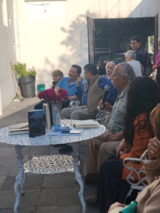 En una dinámica de lectura al alimón y con la generosidad y alegría que simpatiza a Sergio, fuimos compartiendo fragmentos de su libro con los asistentes al evento.