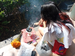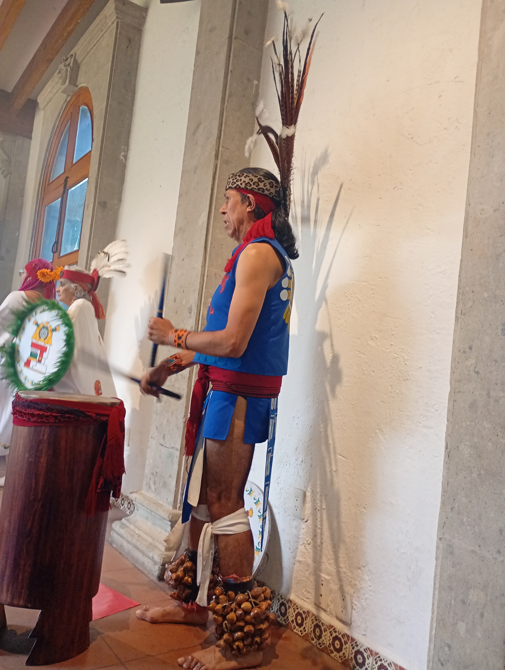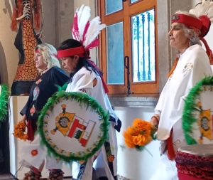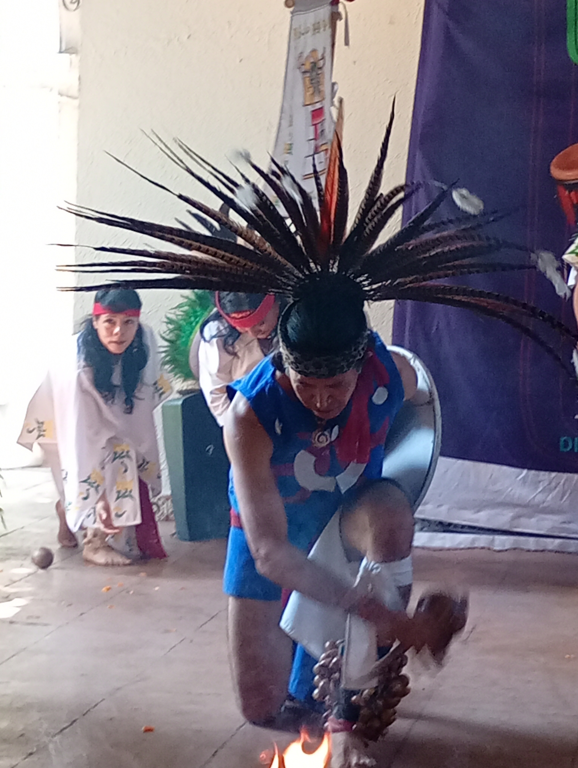 El aroma a copal, el ritmo del huehuetl y la energía de los danzantes nos transportaron a otro momento y espacio para honrar y apreciar la muerte, así como comprender un poco de la raíz de una tradición que se mantiene viva a través de las ofrendas que hoy colocamos en nuestros hogares o que visitamos en los diferentes recintos y lugares de la ciudad. La presentación es resultado del taller que se imparte en el FARO Azcapotzalco donde también se revisa la filosofía prehispánica para comprender mejor la cosmovisión de nuestros ancestros; al final, fuimos honrados con una ofrenda floral de parte de nuestra amiga y danzante Eri.