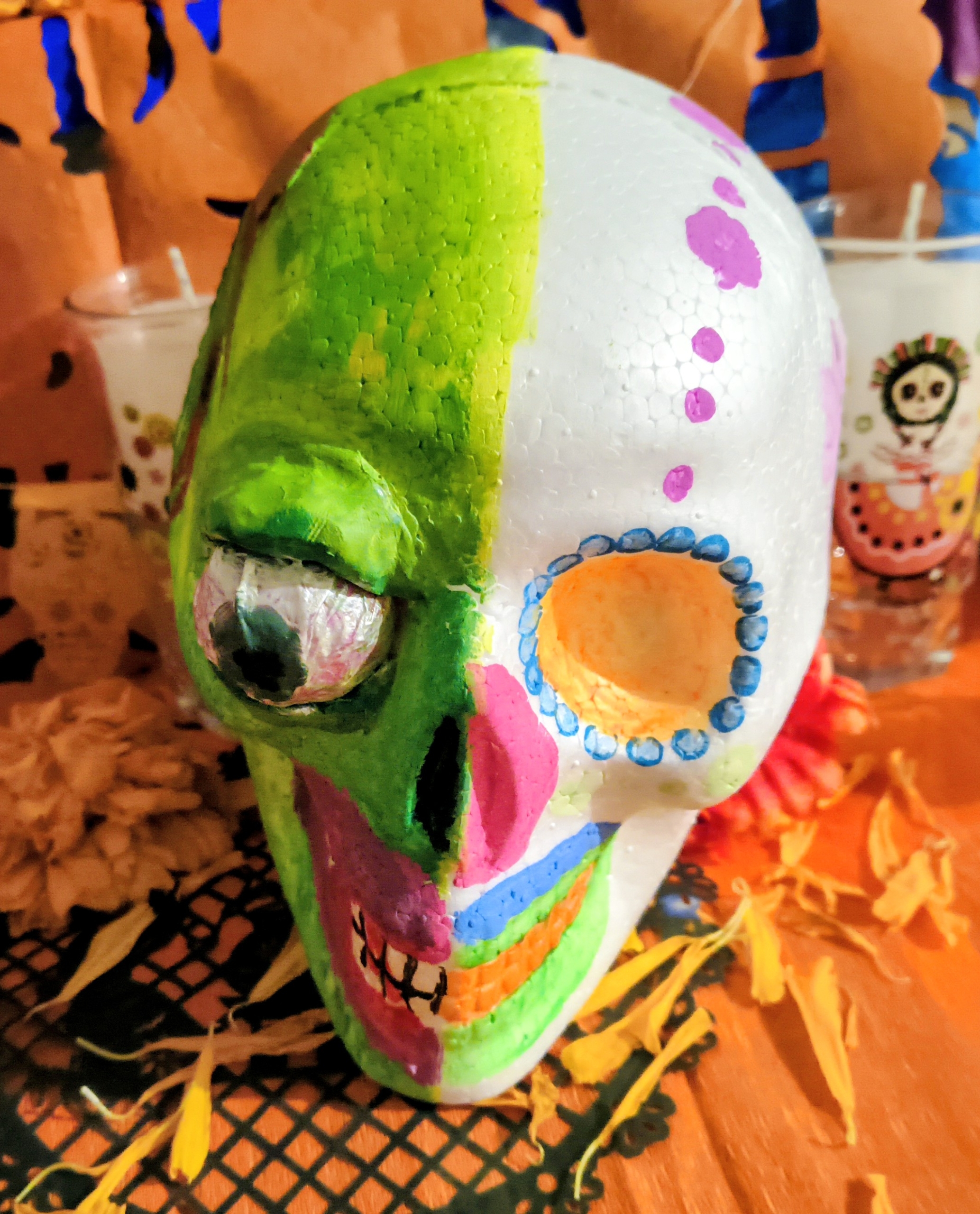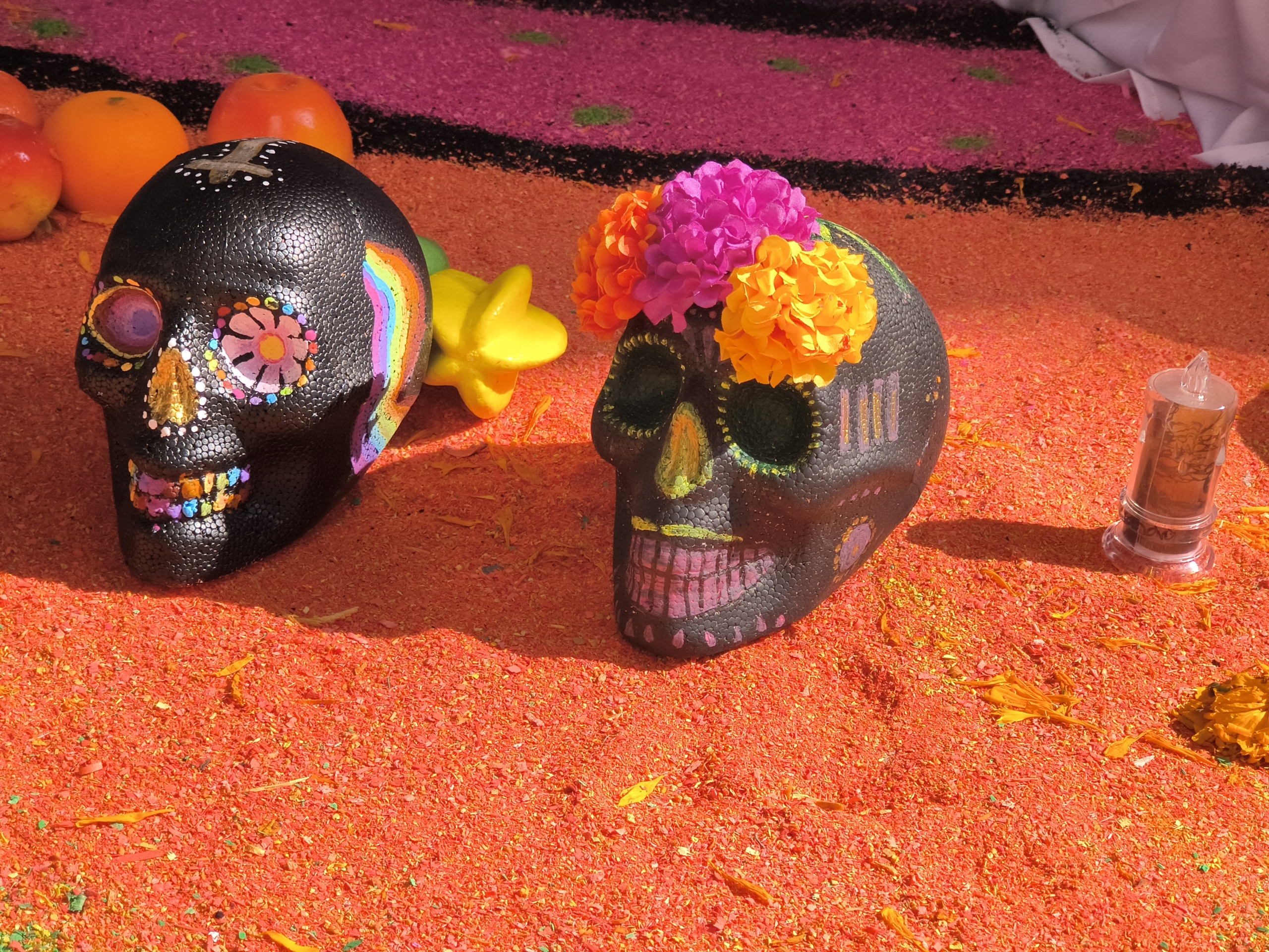 Este año, la experiencia fue diversa, como mamá de Alonso (un niño de once años) las actividades escolares no pararon y pasamos de la compra de materiales para intervenir un cráneo de unicel hasta terminar con un baile de esqueletos zombis que, si bien se sale de la tradición mexicana es parte también del imaginario infantil, pero esa es otra historia.